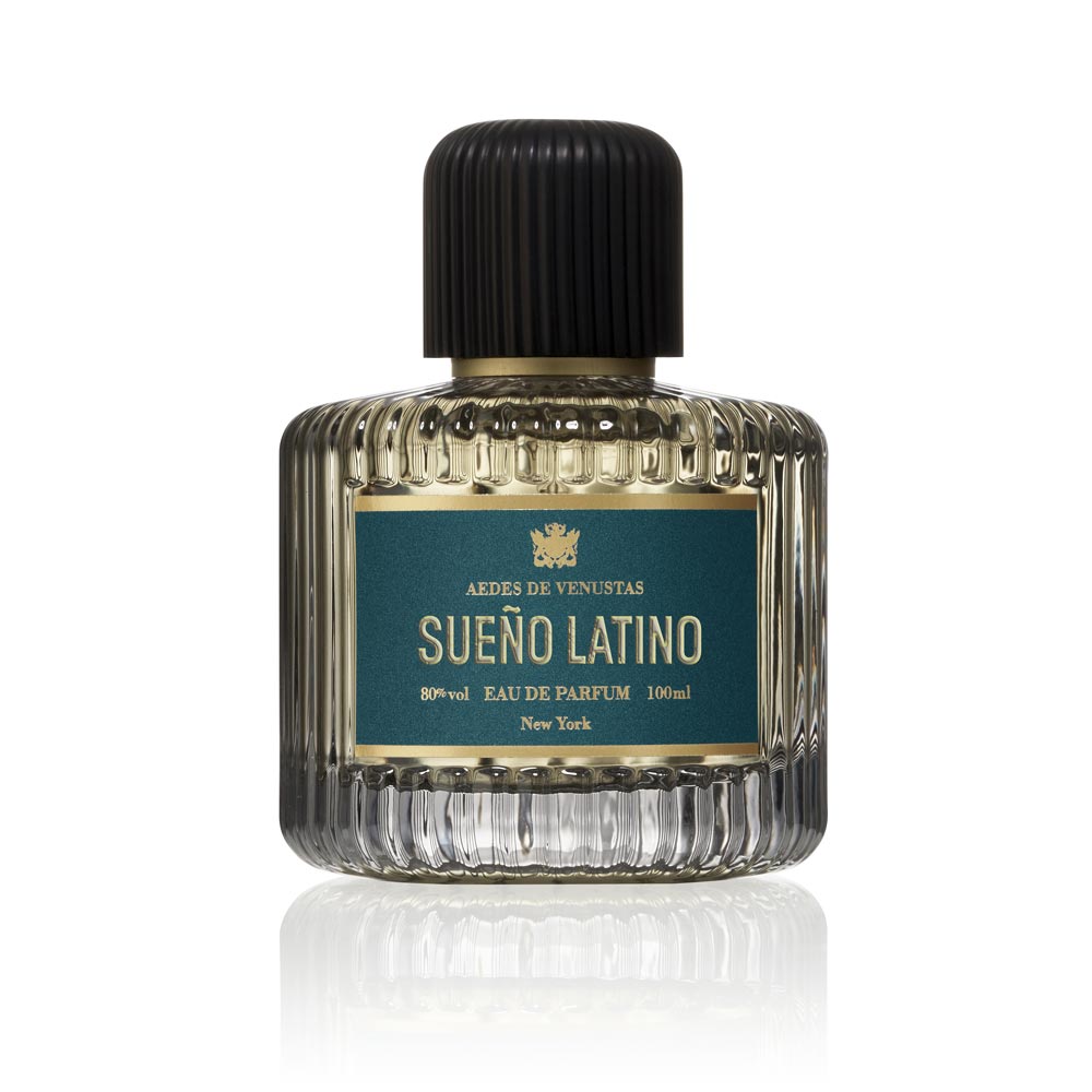 SUENO LATINO non e` un profumo che racconta semplicemente i tropici, e` piuttosto l’interpretazione di una fantasia, un profumo succoso ma al tempo stesso lussuoso contraddistinto dall’iconica firma olfattiva dei legni resinosi di Aedes de Venustas.