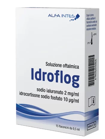 ALFA INTES SOLUZIONE OFTALMICA IDROFLOG A BASE DI IALURONATO DI SODIO E IDROCORTISONE SODIO FOSFATO 15 FLACONCINI DA 0,5 ML