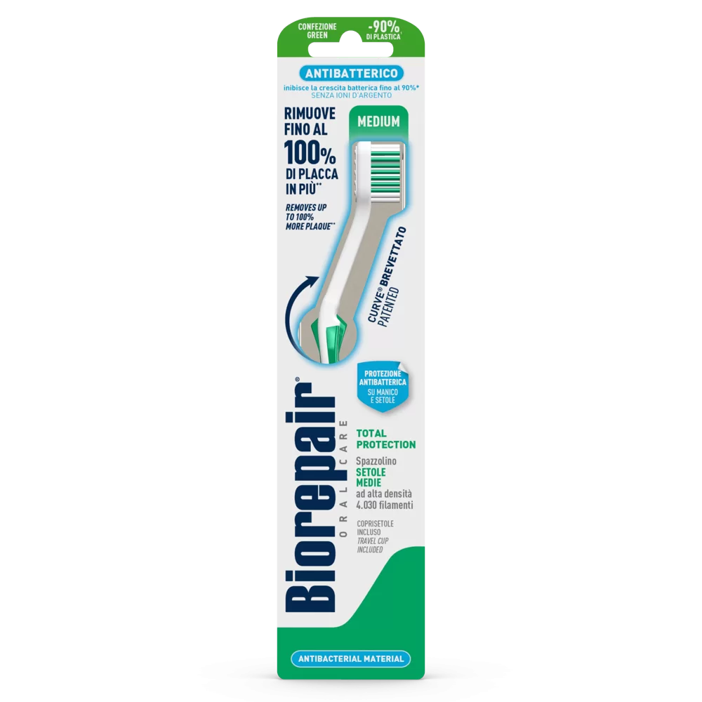 Con setole deep cleaning medie è l’unico spazzolino brevettato realizzatto con innovativo materiale batteriostatico S.C.P.