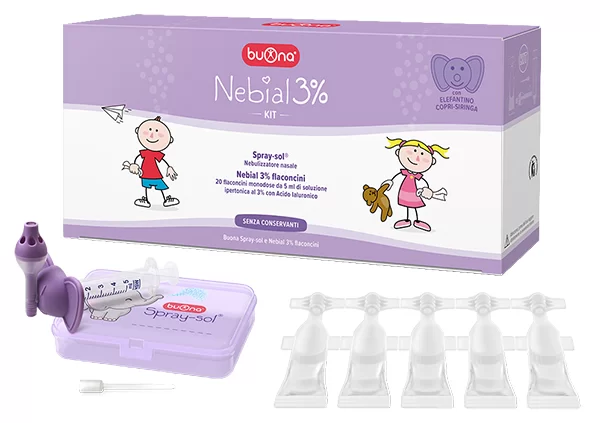 Nebial 3% KIT permette la nebulizzazione di Nebial 3% flaconcini, mediante il dispositivo medico Spray-sol (brevetto in licenza esclusiva Buona Spa Società Benefit).