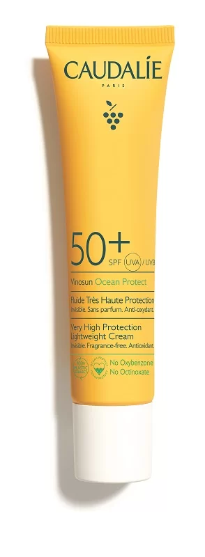 Caudalie presenta il primo trattamento della sua rivoluzionaria gamma di solari: il Fluido ad Altissima Protezione SPF50+ Vinosun Protect, che protegge efficacemente il viso e il collo dai raggi UVA/UVB offrendo un’azione antiossidante alle pelli più sensibili. Grazie alla sua texture invisibile, ultra leggera e senza profumo, assicura una protezione clean e invisibile, per tutti i giorni.