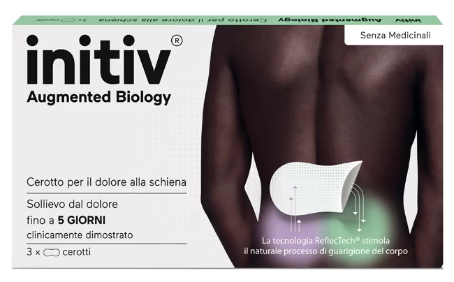 Il corpo assorbe ed emette fisiologicamente energia a infrarossi. Lo strato minerale ReflecTech, presente nel cerotto, trattiene e a sua volta riflette l’energia emessa dal corpo sull’area dolorante. La tecnologia su cui si basa initiv aumenta la microcircolazione del sangue, migliora la mobilità e l’apporto di ossigeno nella zona dolorante per alleviare il dolore.