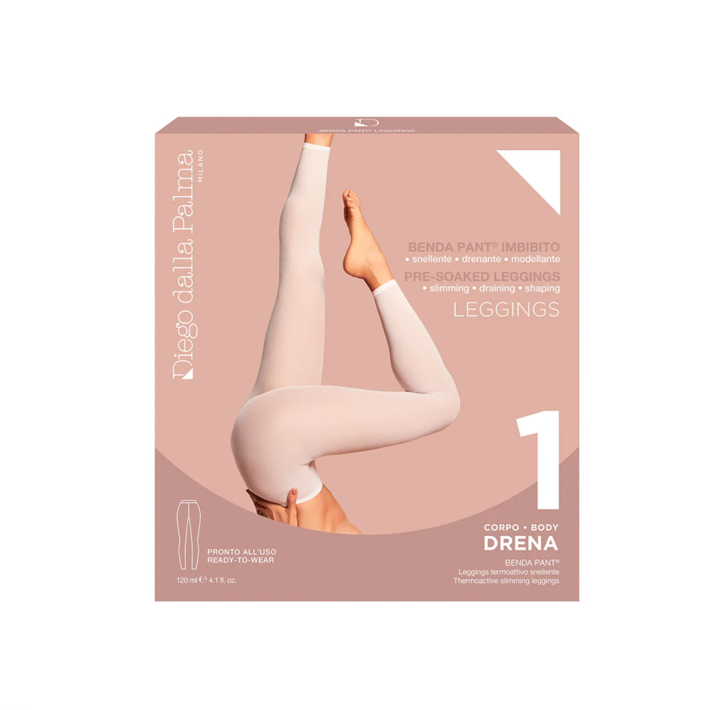 – Leggings imbibiti in tessuto benda, Made in Italy e tailor made. Taglia unica che si adatta a tutte le fisicità e lungo fino alla caviglia per agevolare l’azione drenante.
