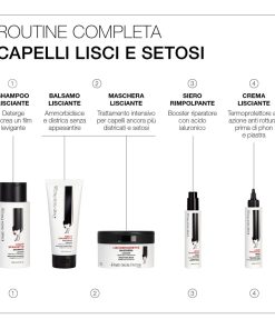 Shampoo disciplinante, grazie all’EXTRA LISS COMPLEX crea un film sulla supercie del capello che leviga le squame per un liscio perfetto libero dal crespo che dura per più e più giorni.