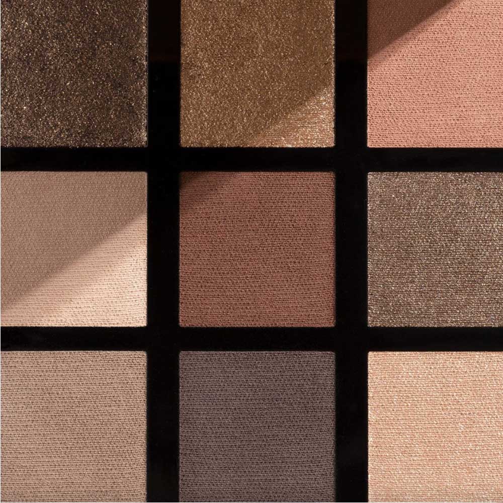 Cinque ombretti matt declinati in diverse tonalità: una nuance color crema, ideale per creare la base del make up; due ombretti scuri: marrone caldo e color cioccolato per intensificare lo sguardo e definire la forma dell’occhio; due nuances medie, beige e tortora, che fungono da transizione tra le prime due. Quattro ombretti extra-pearl che giocano sui toni dell’oro e del bronzo per illuminare la base e impreziosire il look.