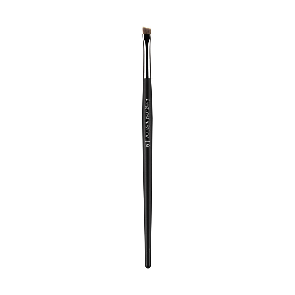 Pennello in setole sintetiche dal taglio obliquo, ideale per sfumare la matita nella parte inferiore dell’occhio garantendo la massima definizione senza rimuoverne il tratto.