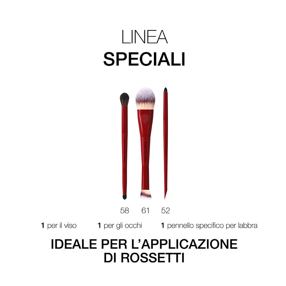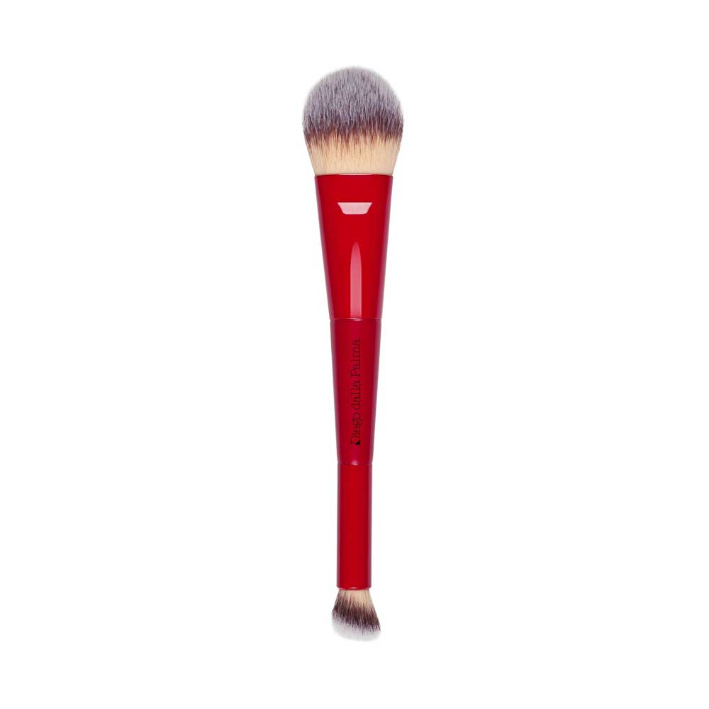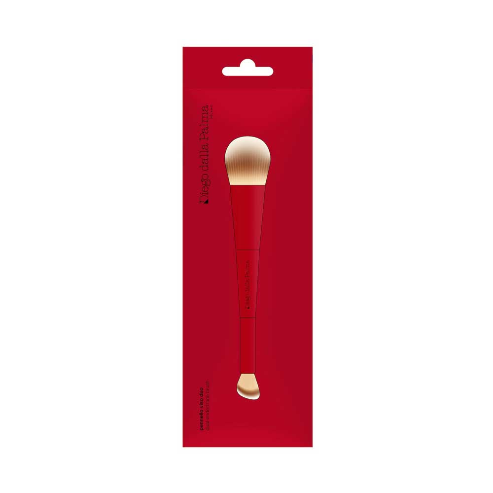 Pennello viso duo ideale per creare una base perfetta con un’applicazione professionale. Da un lato, presenta un pennello piatto, indicato per distribuire uniformemente il fondotinta (liquido o in crema), assicurando una copertura omogenea e priva di anti-estetiche striature. Dall’altro lato, il pennello presenta una forma obliqua studiata appositamente per l’applicazione di correttori. Il taglio angolato permette di lavorare facilmente su aree solitamente difficili da raggiungere.