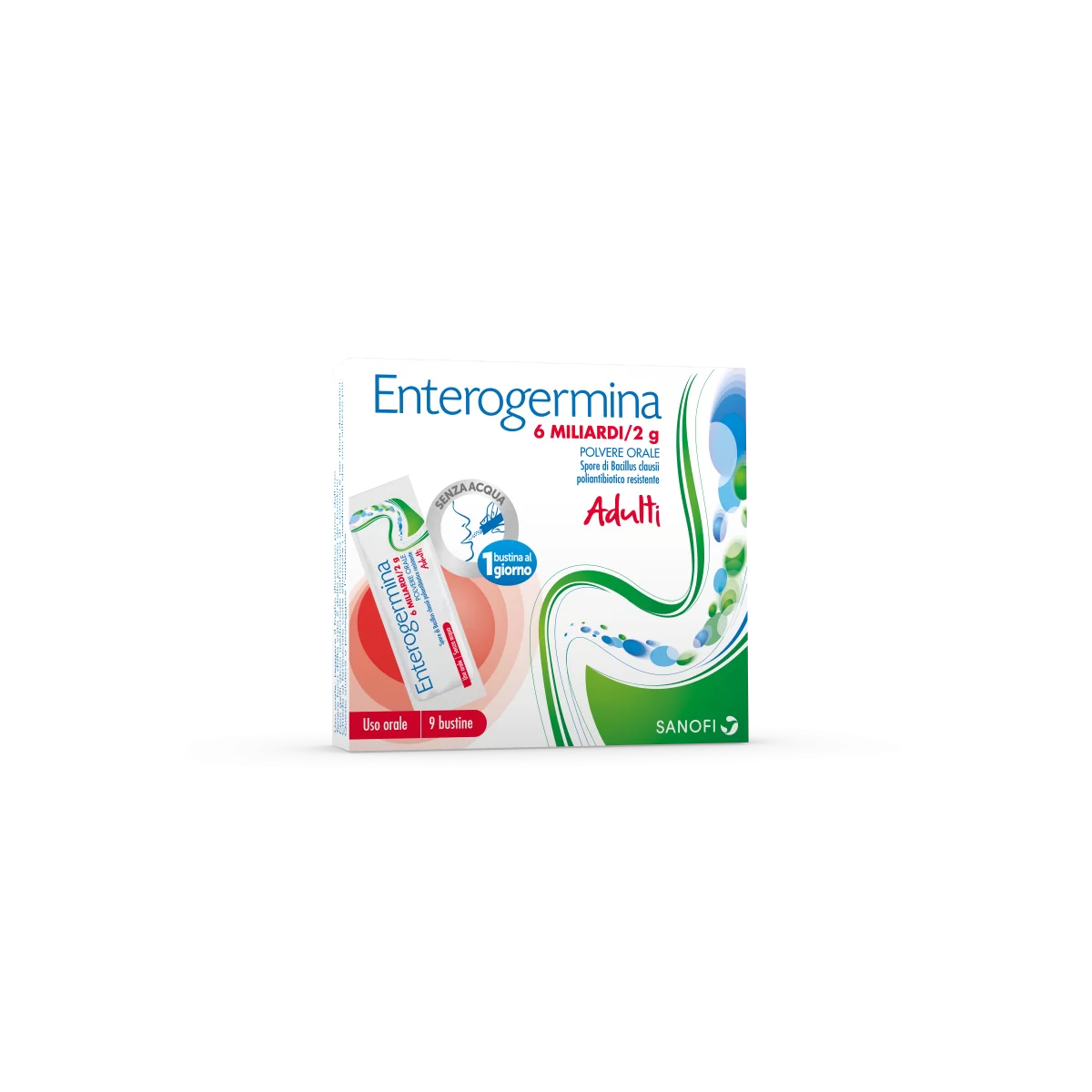 Enterogermina è un medicinale costituito da una sospensione di spore di Bacillus clausii, abitualmente presente nell’intestino, privo di capacità di causare malattie (privo di potere patogeno).