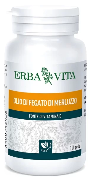 ERBA VITA OLIO FEGATO MERLUZZO 100 PERLE 453 MG è prodotto da ERBA VITA GROUP SpA.