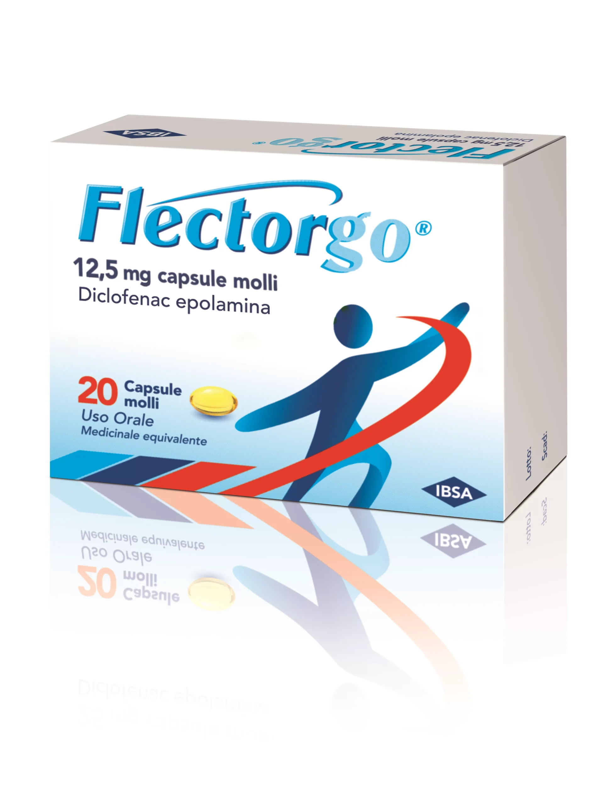 Per FLECTORGO 12,5 mg: Ogni capsula molle contiene diclofenac sotto forma di 15,38 mg di diclofenac epolamina equivalenti a 12,5 mg di diclofenac potassico. Per FLECTORGO 25 mg: Ogni capsula molle contiene diclofenac sotto forma di 30,76 mg di diclofenac epolamina equivalenti a 25 mg di diclofenac potassico. Eccipiente (i) con effetti noti: Per FLECTORGO 12,5 mg: Sorbitolo (E420) massimo 8,02 mg. Per FLECTORGO 25 mg: Sorbitolo (E420) massimo 10,07 mg. Per l’elenco completo degli eccipienti, vedere paragrafo 6.1.