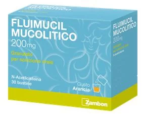 I pazienti affetti da asma bronchiale debbono essere strettamente controllati durante la terapia, se compare broncospasmo il trattamento con N-acetilcisteina deve essere immediatamente sospeso e deve essere avviato un trattamento appropriato. I mucolitici possono indurre ostruzione bronchiale nei bambini di età inferiore ai 2 anni. Infatti la capacità di drenaggio del muco bronchiale è limitata in questa fascia d’età, a causa delle caratteristiche fisiologiche delle vie respiratorie. Essi non devono quindi essere usati nei bambini di età inferiore ai 2 anni (vedere paragrafo 4.3). Richiede particolare attenzione l’uso del medicinale in pazienti affetti da ulcera peptica o con storia di ulcera peptica, specialmente in caso di contemporanea assunzione di altri farmaci con un noto effetto gastrolesivo. L’eventuale presenza di un odore sulfureo non indica alterazione del preparato ma è propria del principio attivo in esso contenuto. La somministrazione di N-acetilcisteina, specie all’inizio del trattamento, può fluidificare le secrezioni bronchiali ed aumentarne nello stesso tempo il volume. Se il paziente è incapace di espettorare in modo efficace, per evitare la ritenzione dei secreti occorre ricorrere al drenaggio posturale e alla broncoaspirazione. N-acetilcisteina può influenzare il metabolismo dell’istamina. Pertanto dovrebbe essere usata cautela quando si somministra Fluimucil Mucolitico in pazienti con intolleranza all’istamina, poiché potrebbero manifestarsi sintomi da ipersensibilità. Informazioni importanti su alcuni eccipienti Lo sciroppo contiene paraidrossibenzoati che possono provocare reazioni allergiche di tipo ritardato. Le compresse orosolubili, lo sciroppo da 600 mg/15 ml e il granulato per soluzione orale senza zucchero contengono sorbitolo. Ai pazienti con intolleranza ereditaria al fruttosio, non deve essere somministrato questo medicinale. Le compresse orosolubili, le compresse effervescenti e il granulato per soluzione orale senza zucchero contengono aspartame, una fonte di fenilalanina che può essere dannosa nei pazienti affetti da fenilchetonuria. Il granulato per soluzione orale da 100 mg e da 200 mg contengono giallo tramonto (E110) che può causare reazioni allergiche. Il granulato per soluzione orale da 100 e 200 mg contiene saccarosio. I pazienti affetti da rari problemi ereditari di intolleranza al fruttosio, da malassorbimento di glucosio-galattosio o da insufficienza di sucrasi isomaltasi, non devono assumere questo medicinale. Il granulato per soluzione orale da 200 mg contiene 2.2 g di saccarosio per bustina mentre il granulato per soluzione orale da 100 mg contiene 4.3 g di saccarosio per bustina quindi è da tenere in considerazione nei pazienti affetti da diabete mellito. Le compresse orosolubili contengono 26,9 mg di sodio per dose, equivalenti a 1,3% dell’assunzione massima giornaliera raccomandata dall’OMS che corrisponde a 2 g di sodio per un adulto. Le compresse effervescenti contengono 156,9 mg di sodio per dose, equivalenti a 7,8% dell’assunzione massima giornaliera raccomandata dall’OMS che corrisponde a 2 g di sodio per un adulto. Lo sciroppo da 100 mg/5 ml (150 ml) contiene 37,5 mg di sodio per dose da 10 ml, equivalenti a 1,8% dell’assunzione massima giornaliera raccomandata dall’OMS che corrisponde a 2 g di sodio per un adulto. Lo sciroppo da 100 mg/5 ml (150 ml) contiene 18,8 mg di sodio per dose da 5 ml, equivalenti a 0,9% dell’assunzione massima giornaliera raccomandata dall’OMS che corrisponde a 2 g di sodio per un adulto. Lo sciroppo da 100 mg/5 ml (200 ml) contiene 38,2 mg di sodio per dose da 10 ml, equivalenti a 1.9% dell’assunzione massima giornaliera raccomandata dall’OMS che corrisponde a 2 g di sodio per un adulto. Lo sciroppo da 100 mg/5 ml (200 ml) contiene 19,1 mg di sodio per la dose da 5 ml, equivalenti a 0,9% dell’assunzione massima giornaliera raccomandata dall’OMS che corrisponde a 2 g di sodio per un adulto. Lo sciroppo da 600 mg/15 ml contiene 96,6 mg di sodio per la dose da 15 ml, equivalenti a 4,8% dell’assunzione massima giornaliera raccomandata dall’OMS che corrisponde a 2 g di sodio per un adulto.