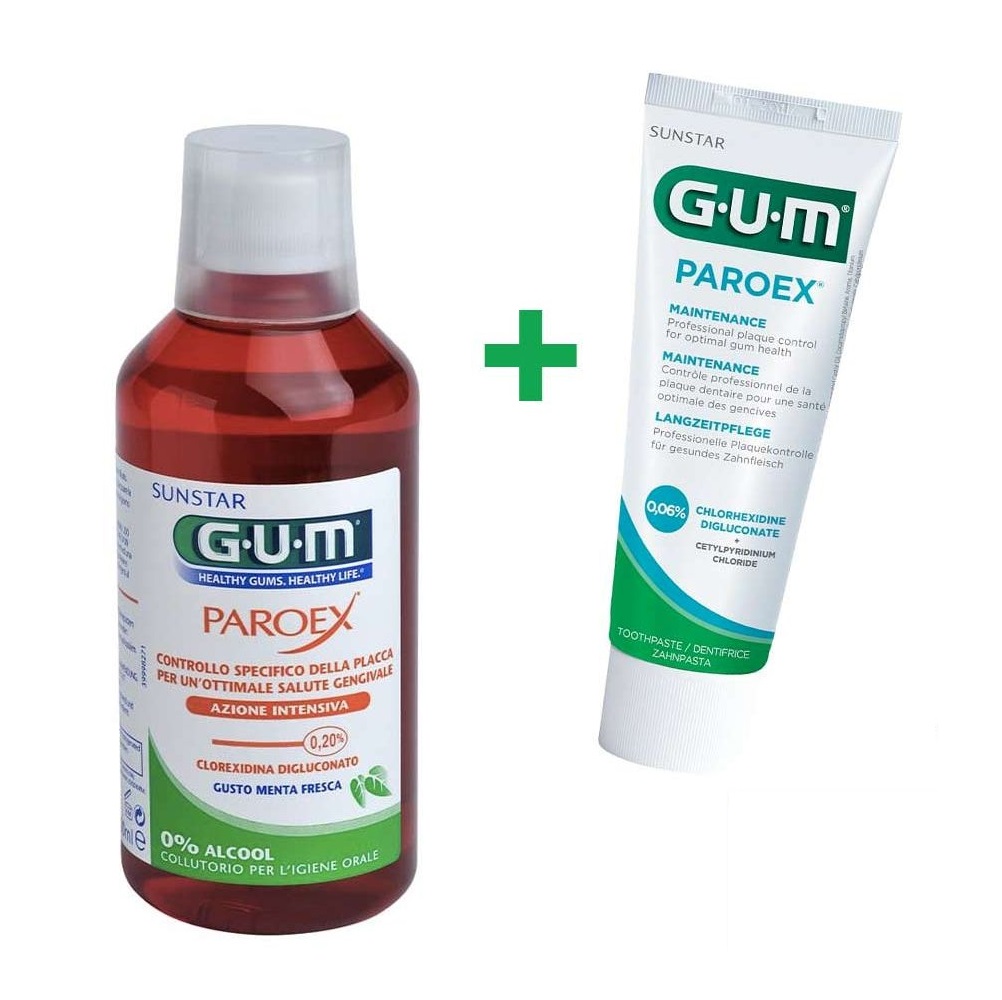 Gum Bundle Pack Paroex 0,20 Collutorio + Dentifricio è un kit per la cura e l’igiene orale che comprende:
