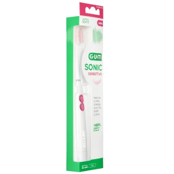 Lo spazzolino a batteria GUM SONIC SENSITIVE offre una pulizia profonda e ultra delicata per denti e gengive sensibili.