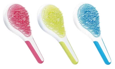 Il segreto di questa spazzola è la particolare distribuzione geometrica delle sue morbide setole di varie lunghezze, che disperde la pressione sul capello durante la spazzolata. I capelli vengono pettinati in modo più piacevole, i nodi si sciolgono facilmente e la perdita e la rottura dei capelli si riduce. La spazzola è disponibile in tre diversi modelli di colore per adattarsi ai vari tipi di capelli: Lisci e Fini (setole morbide e sottili), Mossi e Normali (setole medie), Ricci e Grossi (setole dure).