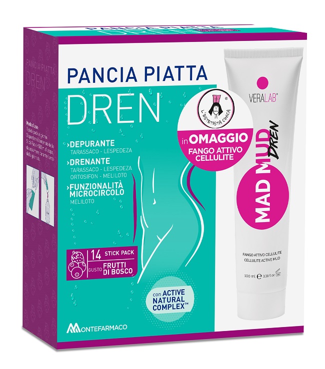 MONTEFARMACO PANCIA PIATTA DREN FRUTTI DI BOSCO 14 BUSTINE STICK PACK + FANGO ATTIVO CELLULITE 100 ML OMAGGIO