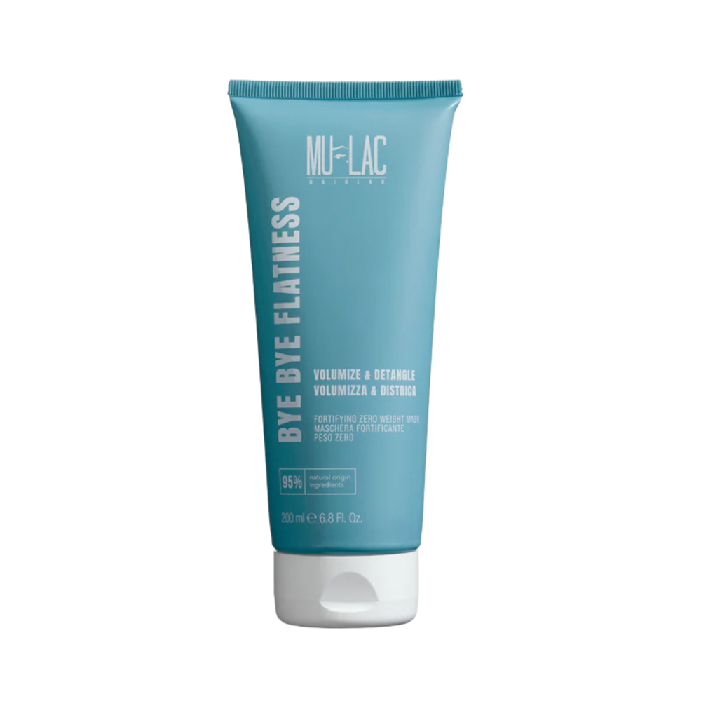 BYE BYE FLATNESSS è una maschera fortificante peso zero. Volumizza e districa i capelli.