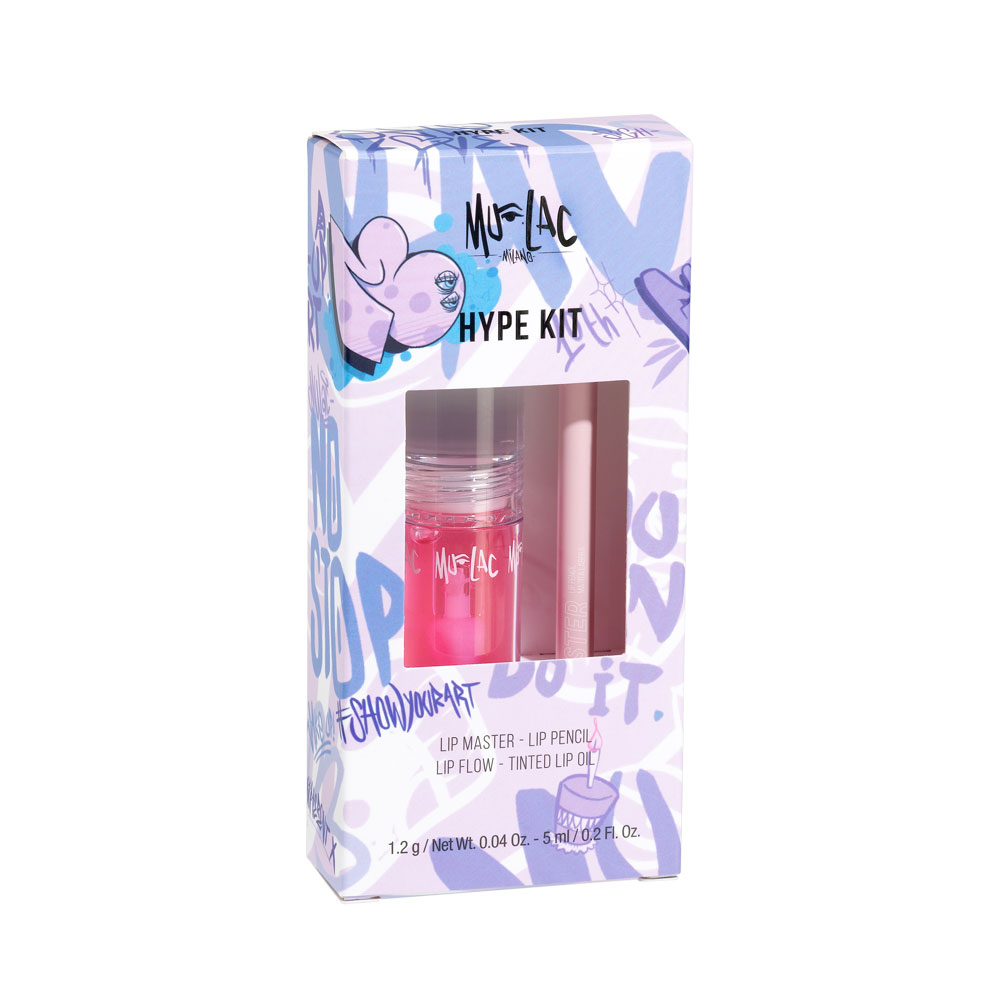 l KIT LABBRA HYPE è composto dalla Lip master PINK MATCHA 14, matita labbra nude rosato e dal Lip flow PINK SYRUP 02, olio labbra colorato.
