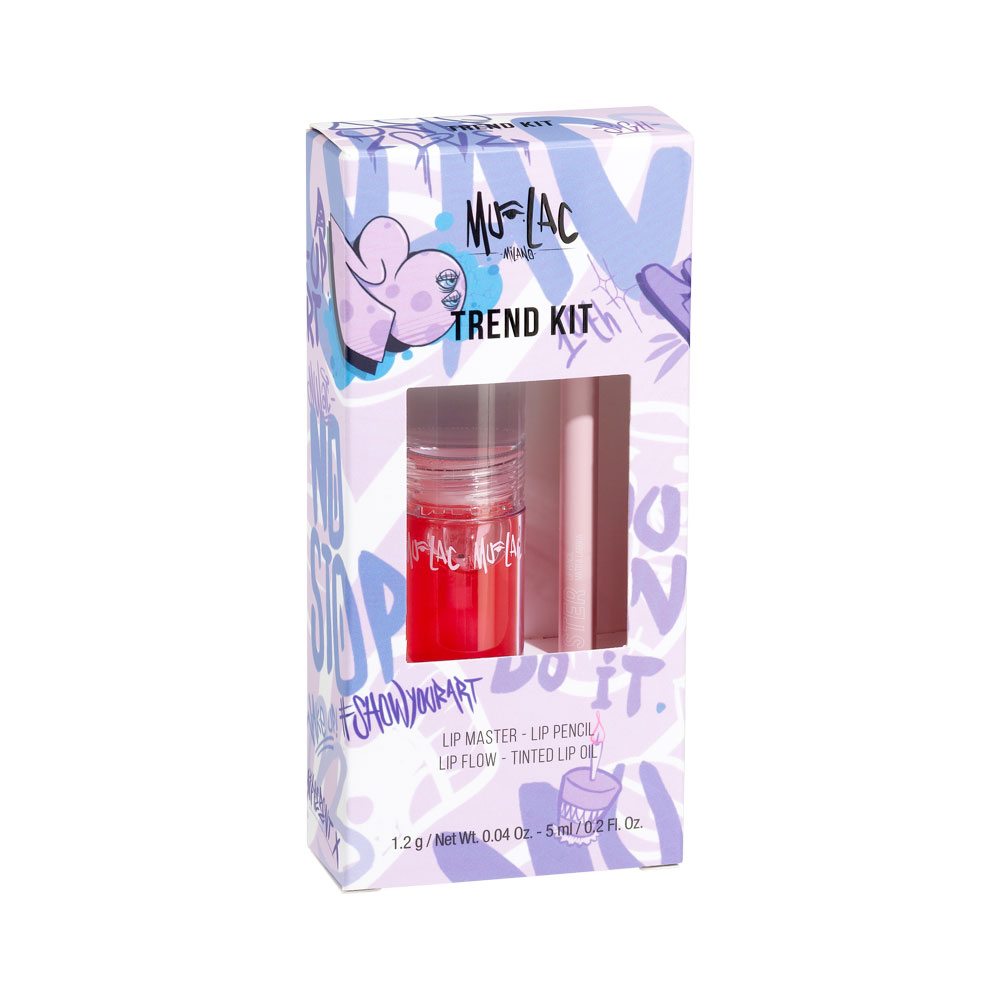 Il KIT LABBRA TREND è composto dalla Lip master CARAMEL SLICE 15, matita labbra nude medio freddo e dal Lip flow RED JELLY 03, olio labbra colorato.