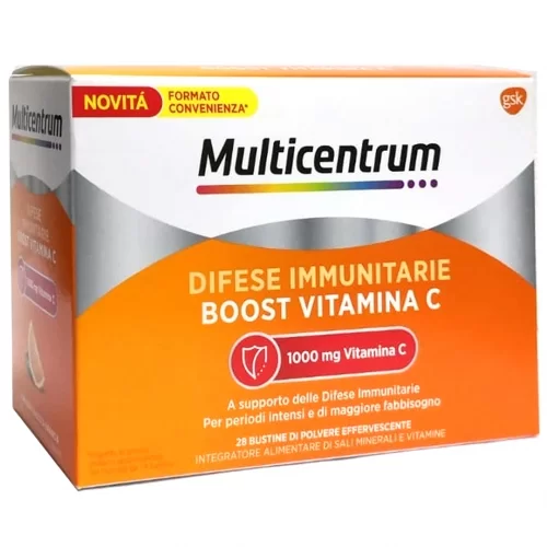 La vitamina C, la vitamina D e lo zinco sono utili per sostenere le difese naturali dell’organismo, importanti durante la stagione fredda. Il magnesio, come il potassio, contribuisce al normale funzionamento del sistema nervoso. Inoltre multicentrum difese immunitarie Boost vitamina C contiene Vitamina B2 e il Manganese che contribuiscono alla protezione delle cellule dallo stress ossidativo.