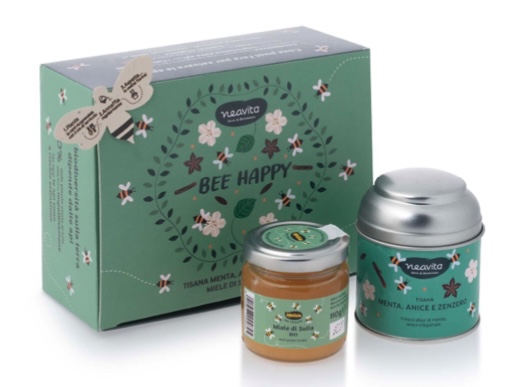 Contiene 20 g Tisana Menta Anice Zenzero e 110 g Miele di Sulla BIO