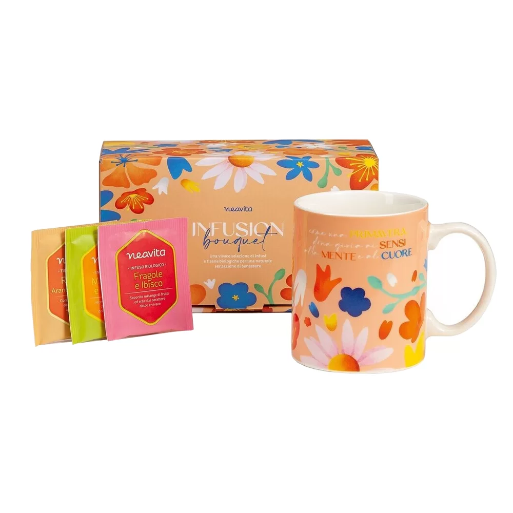 NEAVITA COFANETTO INFUSION BOUQUET ARANCIONE 9 FILTRI BIO E MUG