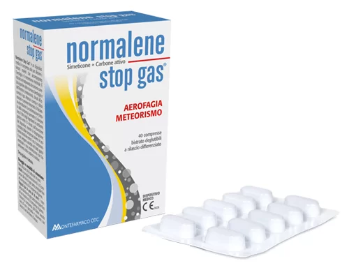 Una compressa di Normalene Stop Gas contiene: Simeticone 50 mg, Carbone 300 mg.