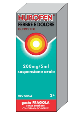 NUROFEN FEBBRE D 200 MG/5 ML SOSPENSIONE ORALE GUSTO FRAGOLA SENZA ZUCCHERO FLACONE DA 100 ML CON SIRINGA DOSATRICE