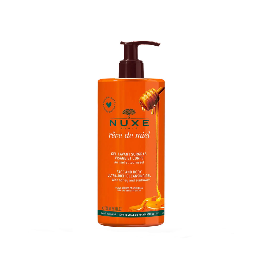 Scopri il Gel lavant surgras viso e corpo Rêve de Miel in edizione limitata in formato deluxe. Questo gel lavante viso e corpo, al Miele e Girasole, vellutato e deliziosamente mielato, si prende cura quotidianamente delle pelli secche e sensibili. Deterge il viso e il corpo senza seccare la pelle.