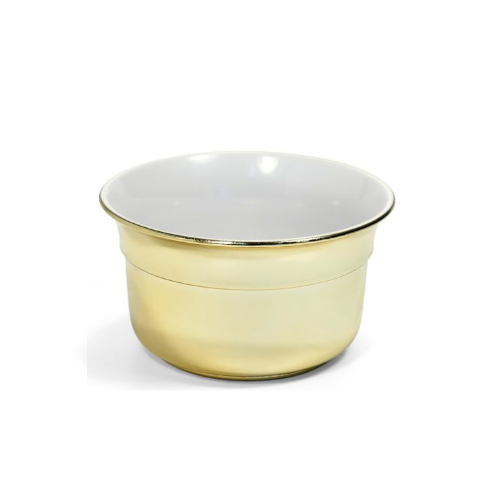 Ciotola da barba Omega in plastica oro con interno bianco. Diametro 89mm – Altezza 49mm