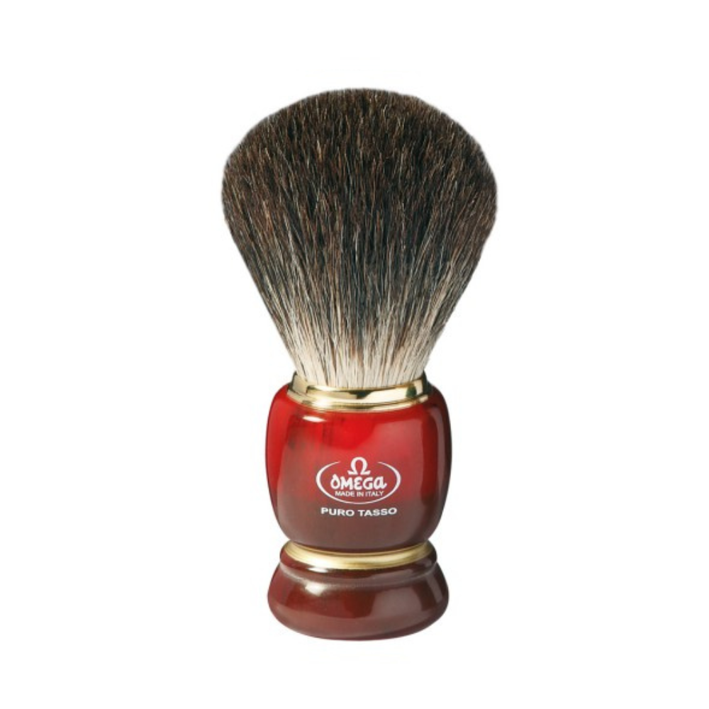 Pennello da barba Omega in tasso Nero con manico in resina. La più comune tra le varie qualità di Tasso. I pennelli prodotti in Tasso Nero, dal caratteristico colore scuro, si contraddistinguono per forza e resistenza, mantenendo un’ottima capacità di produrre schiuma. Il loro valore è leggermente inferiore rispetto ad altri in qualità più pregiate, pur essendo prodotti al 100% con accurata produzione manuale. Ottimi come punto di partenza per chi si vuole avvicinare al mondo della rasatura tradizionale o per chi apprezza un tocco più deciso.