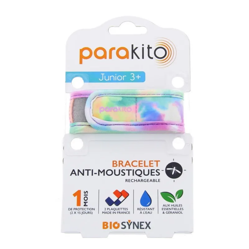 Il bracciale antizanzare Parakito Tie & Dye per bambini unisce efficacia e stile, offrendo una soluzione naturale contro le zanzare con un tocco di allegria. Questo accessorio, progettato per il benessere dei più piccoli, presenta un design vivace e colorato che cattura l’attenzione e si adatta perfettamente al polso dei bambini.