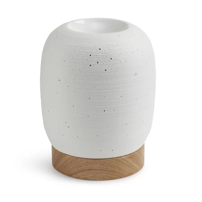È un diffusore elettrico in ceramica artigianale. La lampadina posizionata all’interno del diffusore, scalda l’olio essenziale che viene distribuito senza nessun rumore fastidioso, grazie al calore.