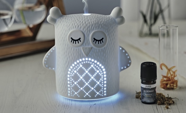 Il grazioso diffusore, realizzato artigianalmente, rappresenta un animaletto noto come portafortuna: il gufo. Dai fori si diffonde una luce a led delicata e multicolore, che crea un’atmosfera serena e rilassata