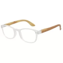 Occhiale premontato da lettura con montatura con aste con effetto legno di bamboo e tecnologia flex.