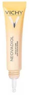 Neovadiol Contorno Occhi & Labbra, formulato con Proxylane, estratto di cassia, acido ialuronico e niacinamide, aiuta a trattare i segni degli effetti della menopausa sulla pelle: la pelle è rassodata, idratata e la sua elasticità è migliorata. Con Neovadiol Contorno Occhi & Labbra, formulato con Omega 3-6-9, acqua vulcanica di Vichy e caffeina la pelle del contorno occhi e labbra è più nutrita e lenita e le borse sotto gli occhi sono ridotte.